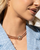 Infused along an invisible string, a double-stranded collection of glossy Brush pearls layers below the neckline for a decadent array. Pressed in a glittery white rhinestone-encrusted gold border, an oversized Brush pearl pendant is centered amongst the strands for additional glitz and glam. Features an adjustable clasp closure.