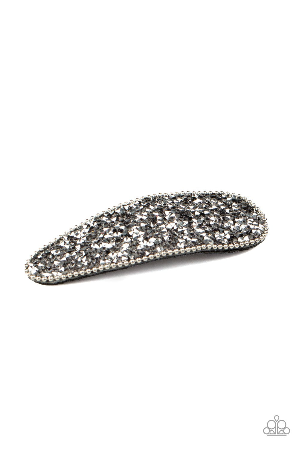 Bordered in shiny silver ball chain, a glittery collision of hematite rhinestones are encrusted across the front of a sparkly frame for a glamorous finish. Features a standard hair clip.