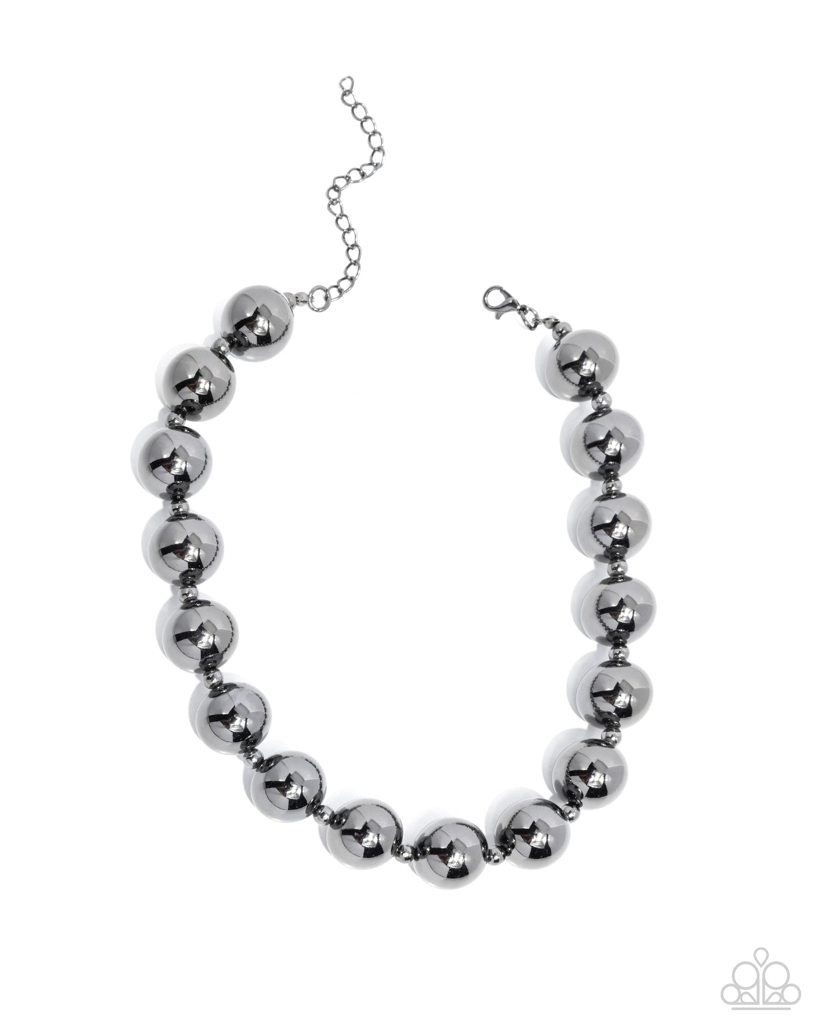 Infused along an invisible string, a collection of oversized gunmetal beads alternate with dainty gunmetal beads for a monochromatic mismatched look. Features an adjustable clasp closure.