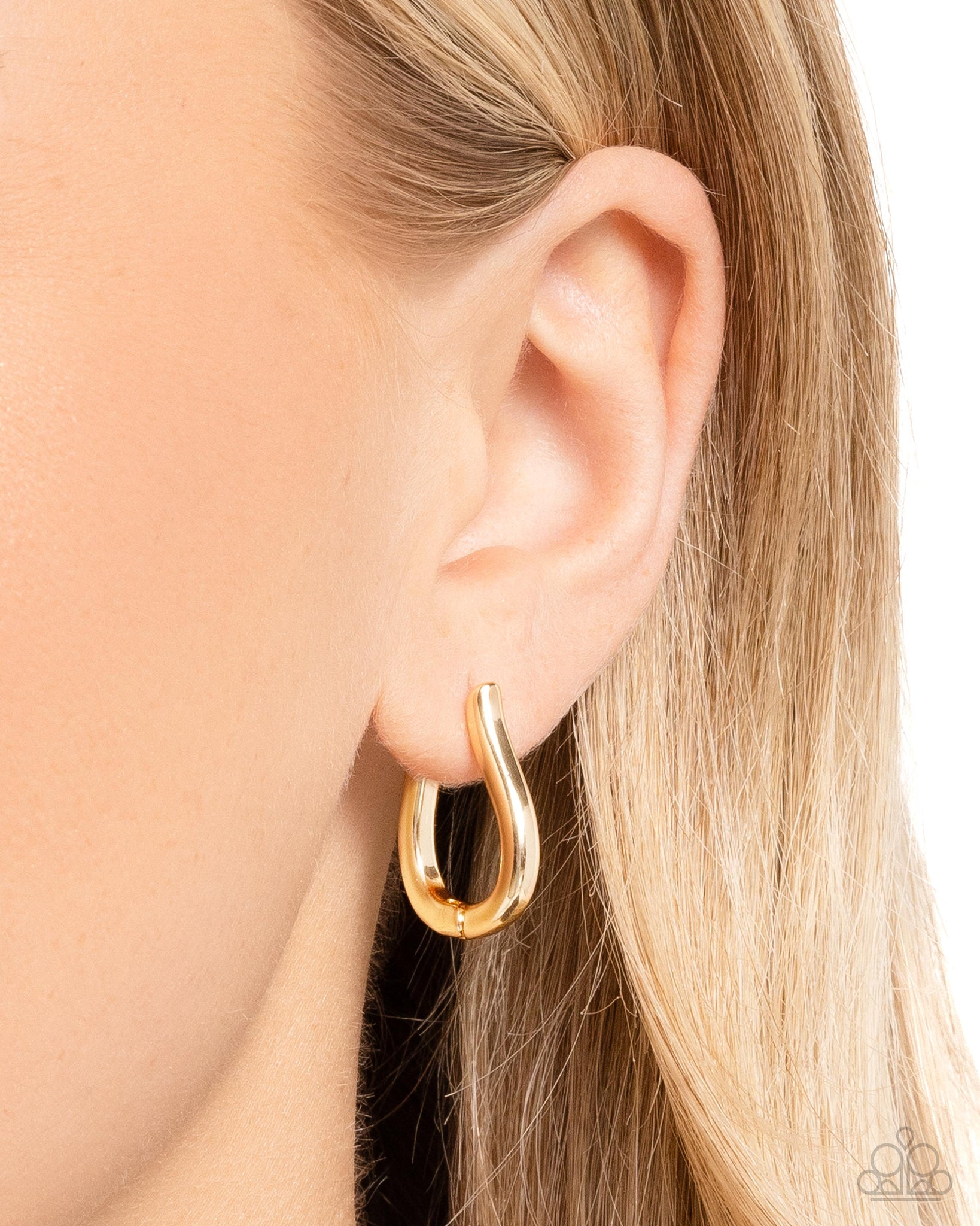 Featuring a horseshoe-like cut, a sleek gold hoop hugs the ear for a whimsical-inspired design. Earring attaches to a standard hinge closure fitting. Hoop measures approximately 3/4" in diameter.