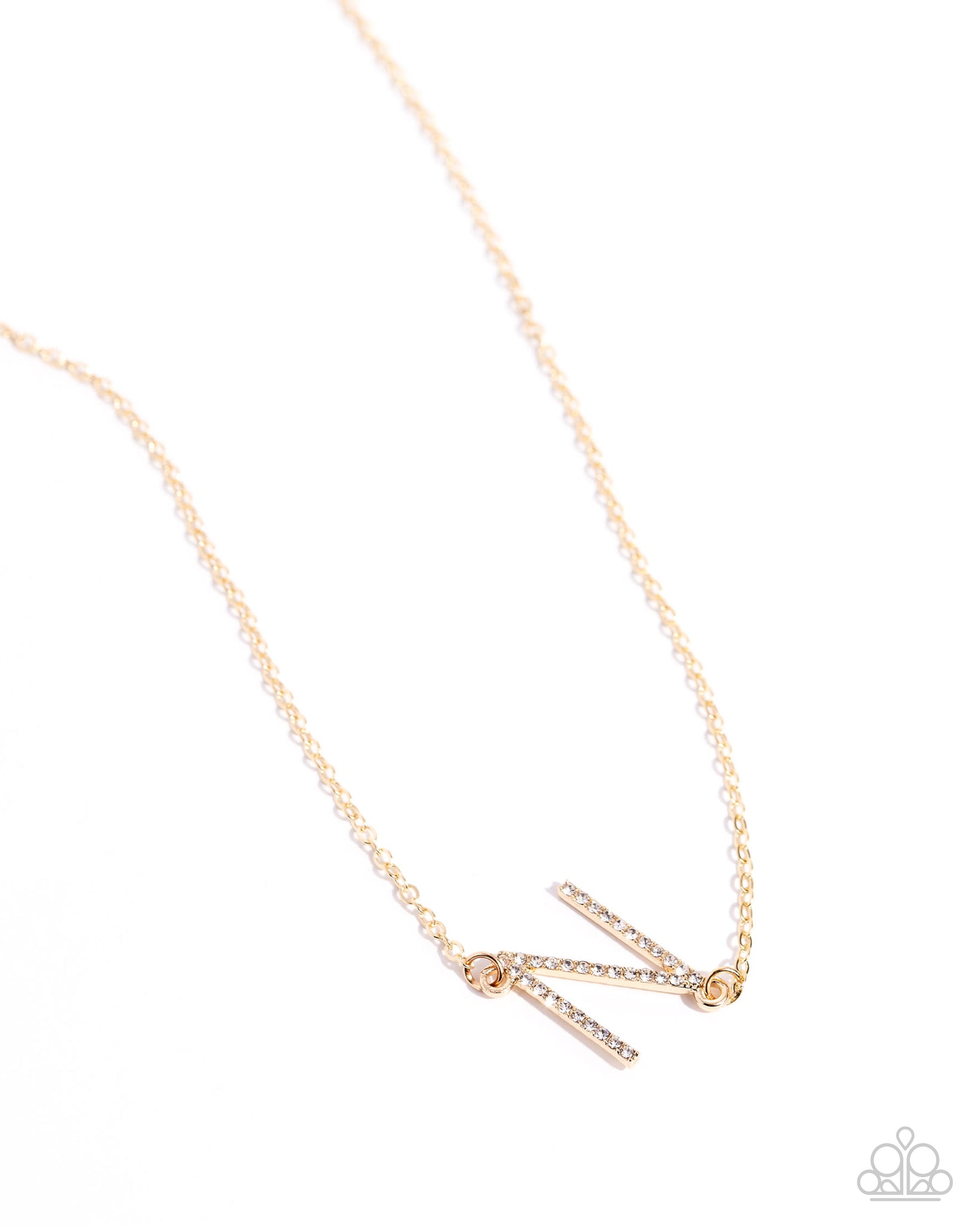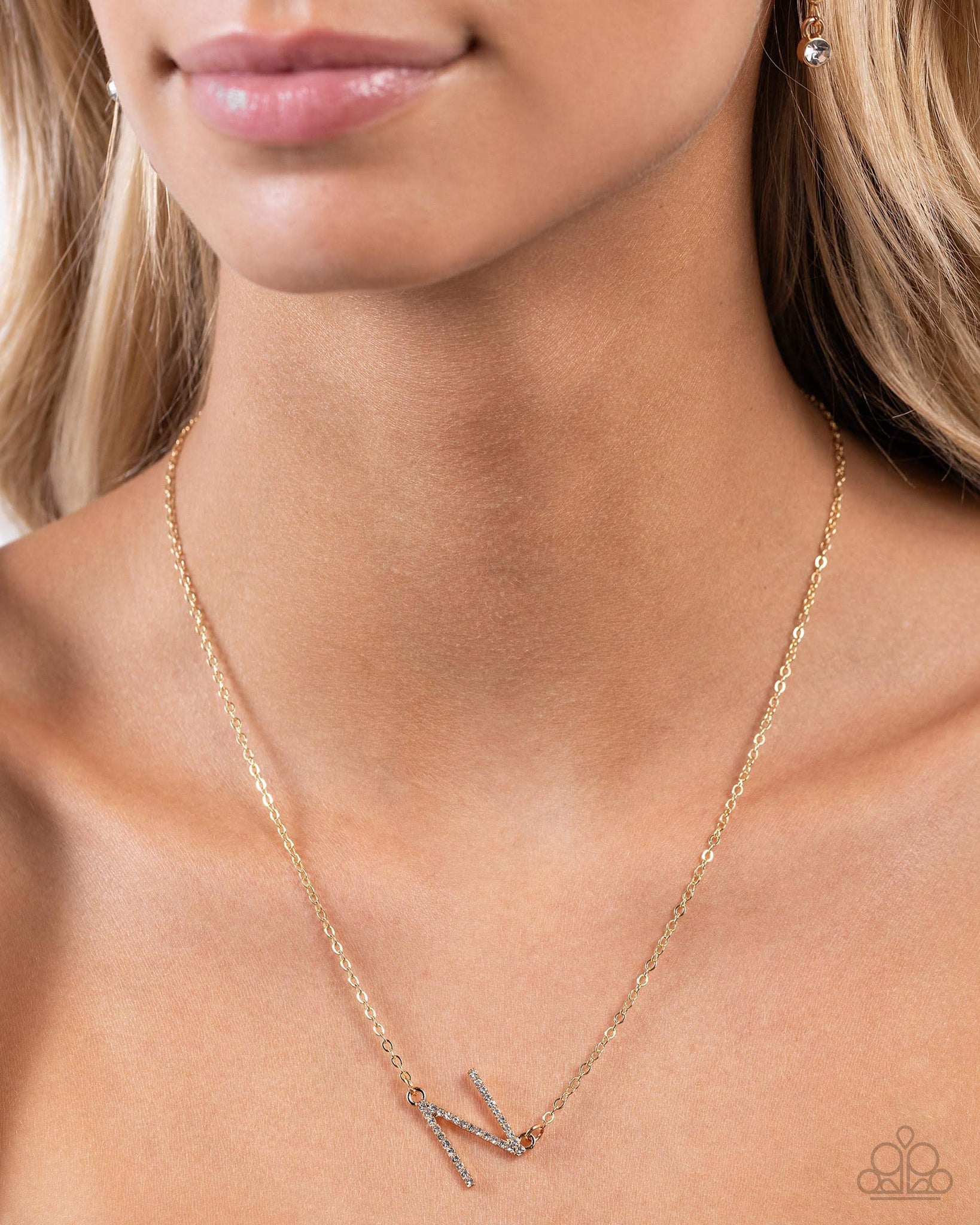 Embossed with dainty white rhinestones, a gold letter "N" hovers below the collar from a dainty gold chain for a sentimentally simple design. Features an adjustable clasp closure.