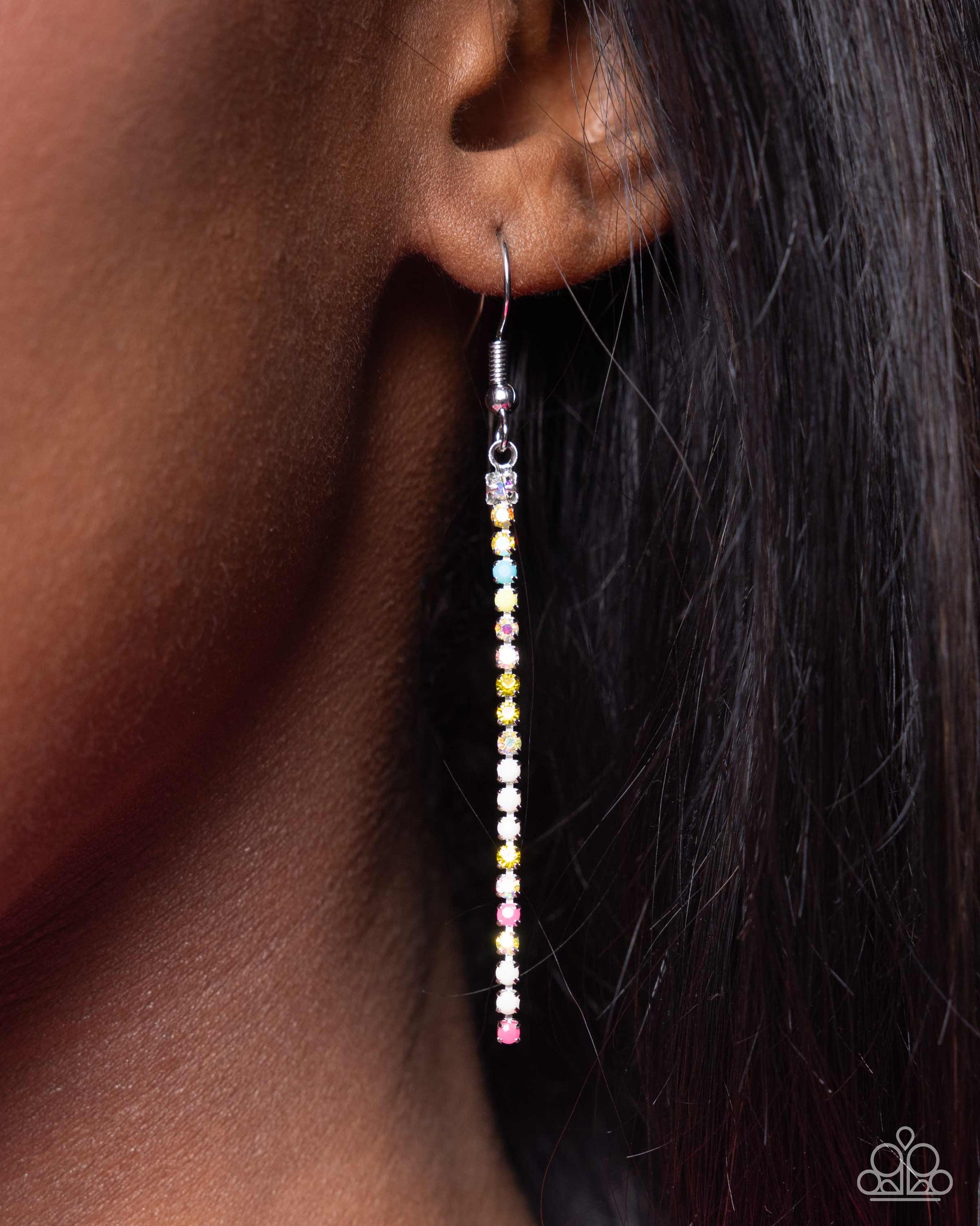 Set in silver square fittings, a collection of multicolored rhinestones and painted beads coalesce below the neckline in a multitude of layers for a pop of bright color. A silver star charm dances along the lowermost multicolored strand for a Sunset-inspired finish. Features an adjustable clasp closure.