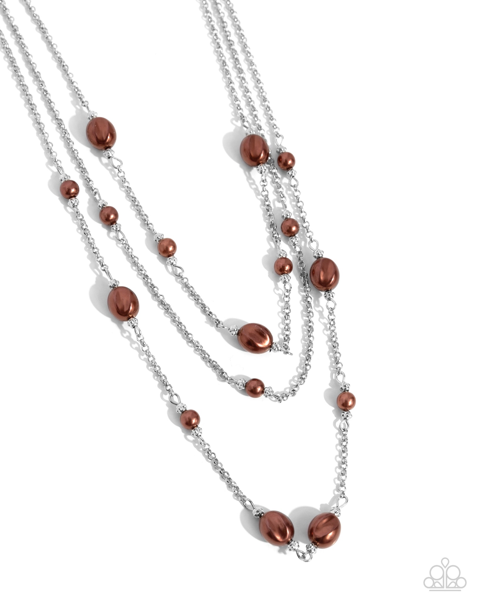 Infused with dainty studded silver beads, a bubbly assortment of round and faceted brown pearls playfully pops from layered chains below the collar for a timeless pearl twist. Features an adjustable clasp closure.