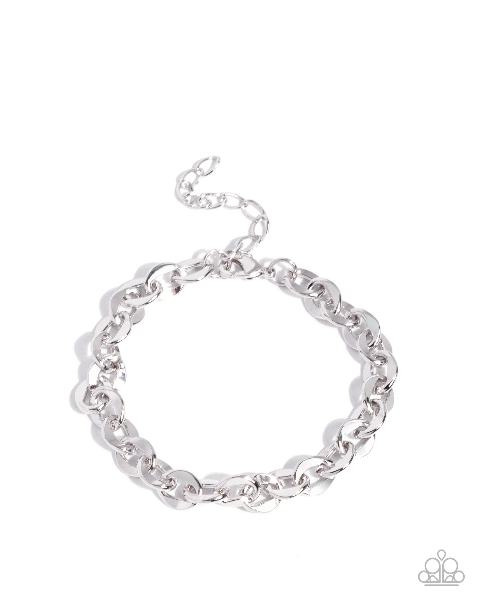 Thick widened silver links coalesce and interlock around the wrist for a bold and beautiful basic look. Bracelet is rhodium plated and features an adjustable clasp closure. Add our rhodium plated charms to create a personalized bracelet.