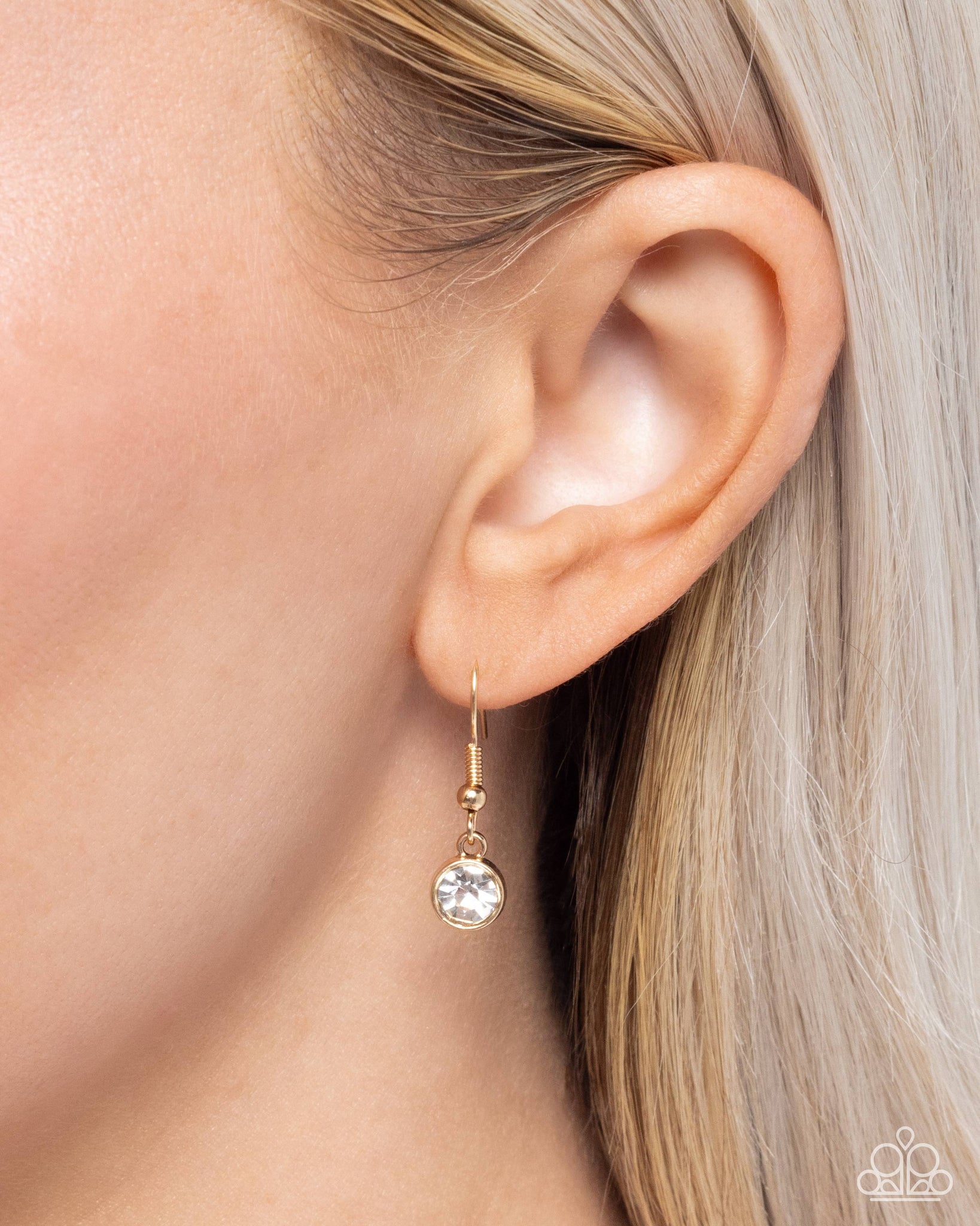 Strung along a strand of sleek gold snake chain, round white rhinestones are set in gold fittings around a larger champagne teardrop gem, giving way to an upside-down champagne teardrop gem pressed in a border of glistening white rhinestones, creating an ornate adjustable floral-inspired fringe. Additional gold beads cap the ends of the chain for a monochromatic finish. Features a bolo closure.