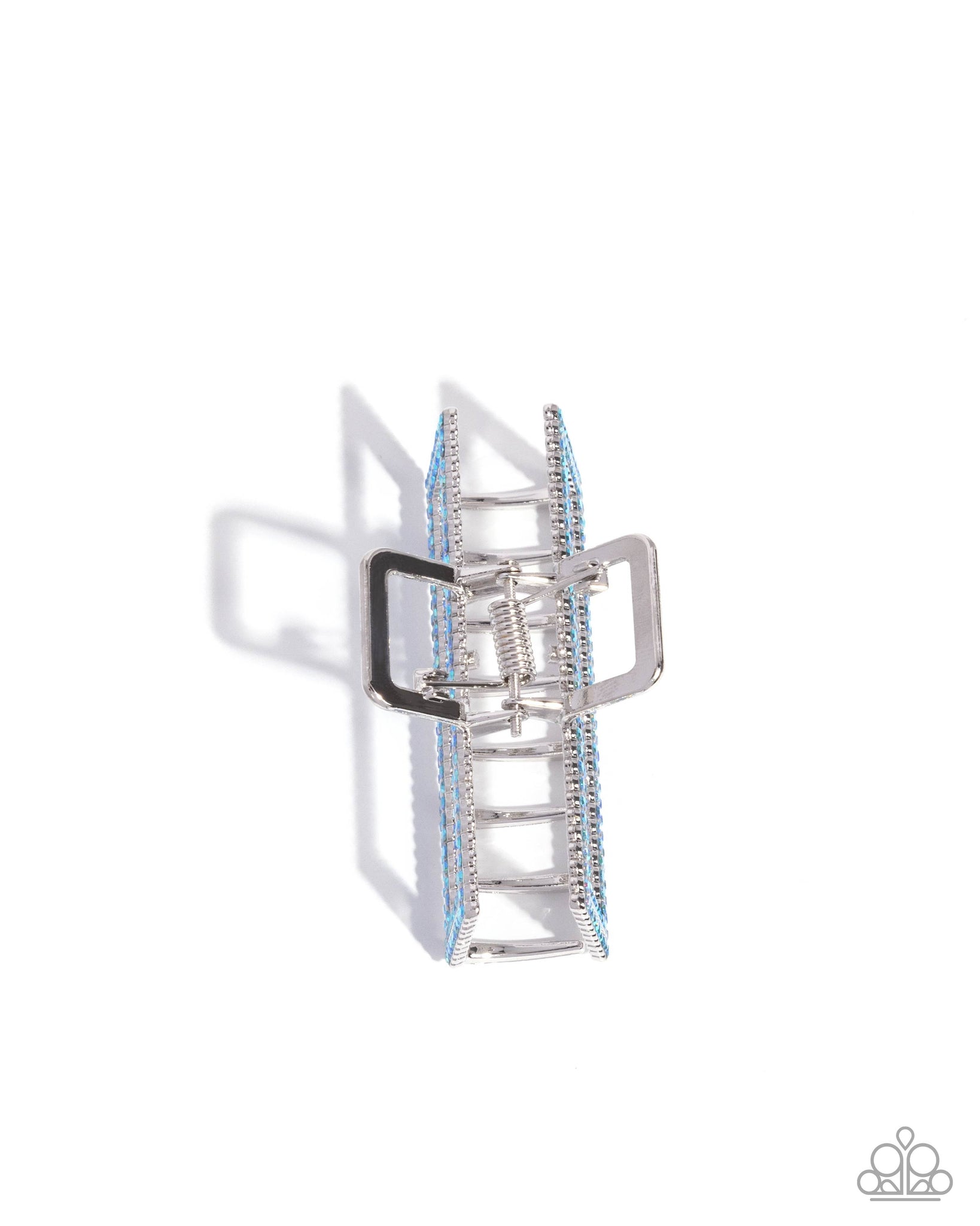 Featuring layered blue iridescent rhinestones, a polished silver claw clip holds the hair away from the face for an on-the-go chic-inspired display. Clip measures approximately 1 1/2" in length and 2 3/4" in width. Due to its prismatic palette, color may vary.
