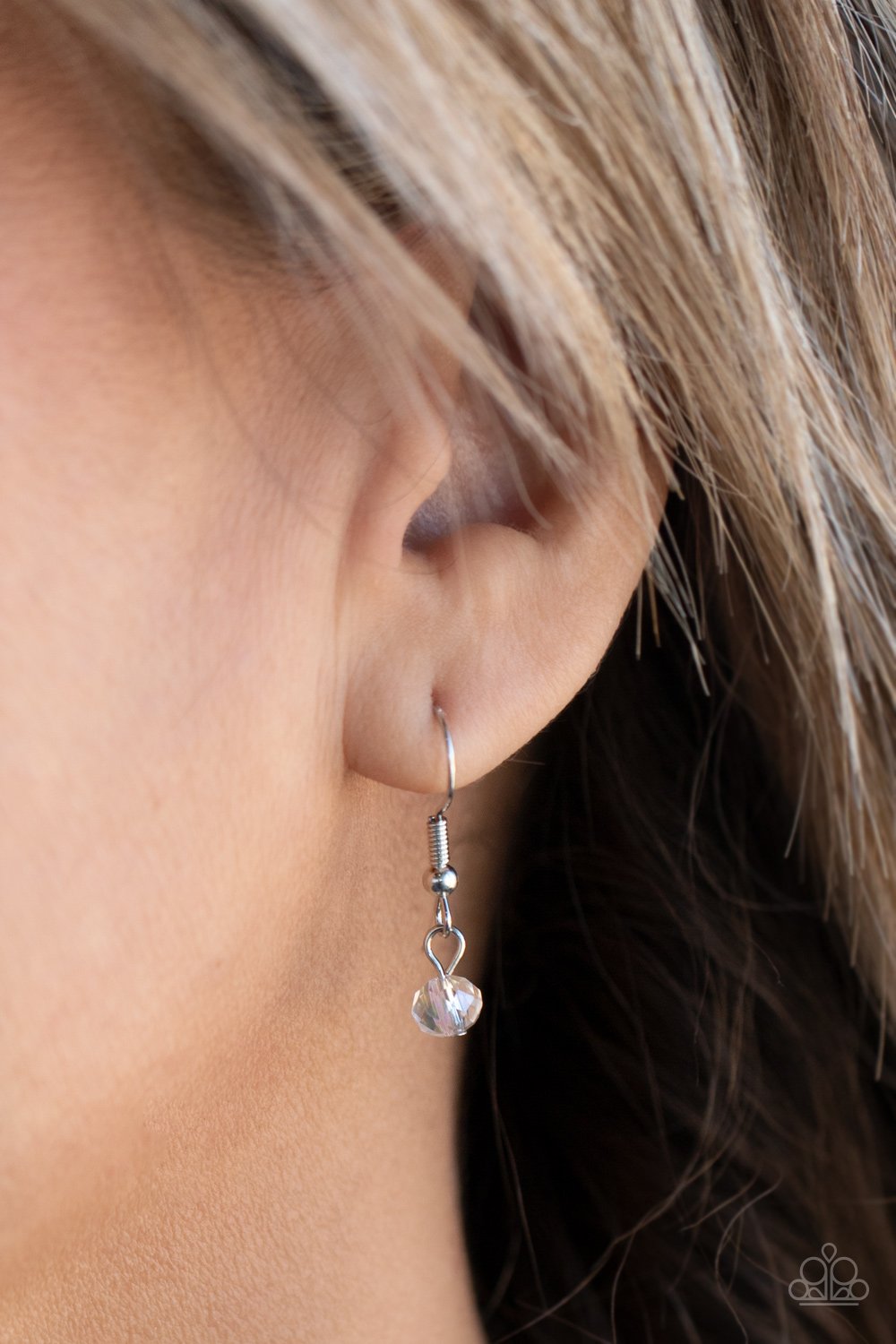 A dainty silver chain adorned in trios of iridescent crystal-like beads layers with a chain dotted with matching crystal-like accents and imperfect silver and pearly brown beads across the chest for a refined flair. Features an adjustable clasp closure.