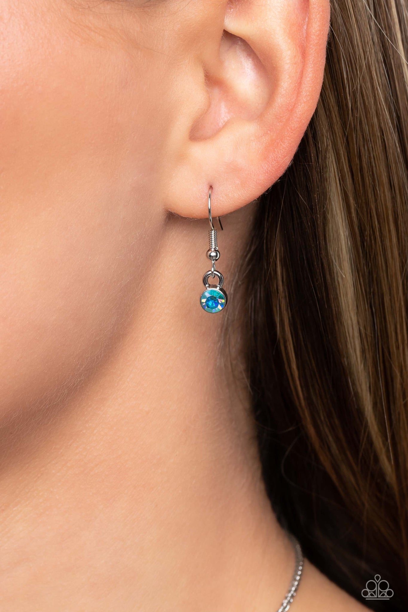 Featured on a scalloped silver pendant, rows of blue and iridescent blue rhinestones encircle a blue rhinestone center, creating an eclectic mandala-like design. Features an adjustable clasp closure. Due to its prismatic palette, color may vary.