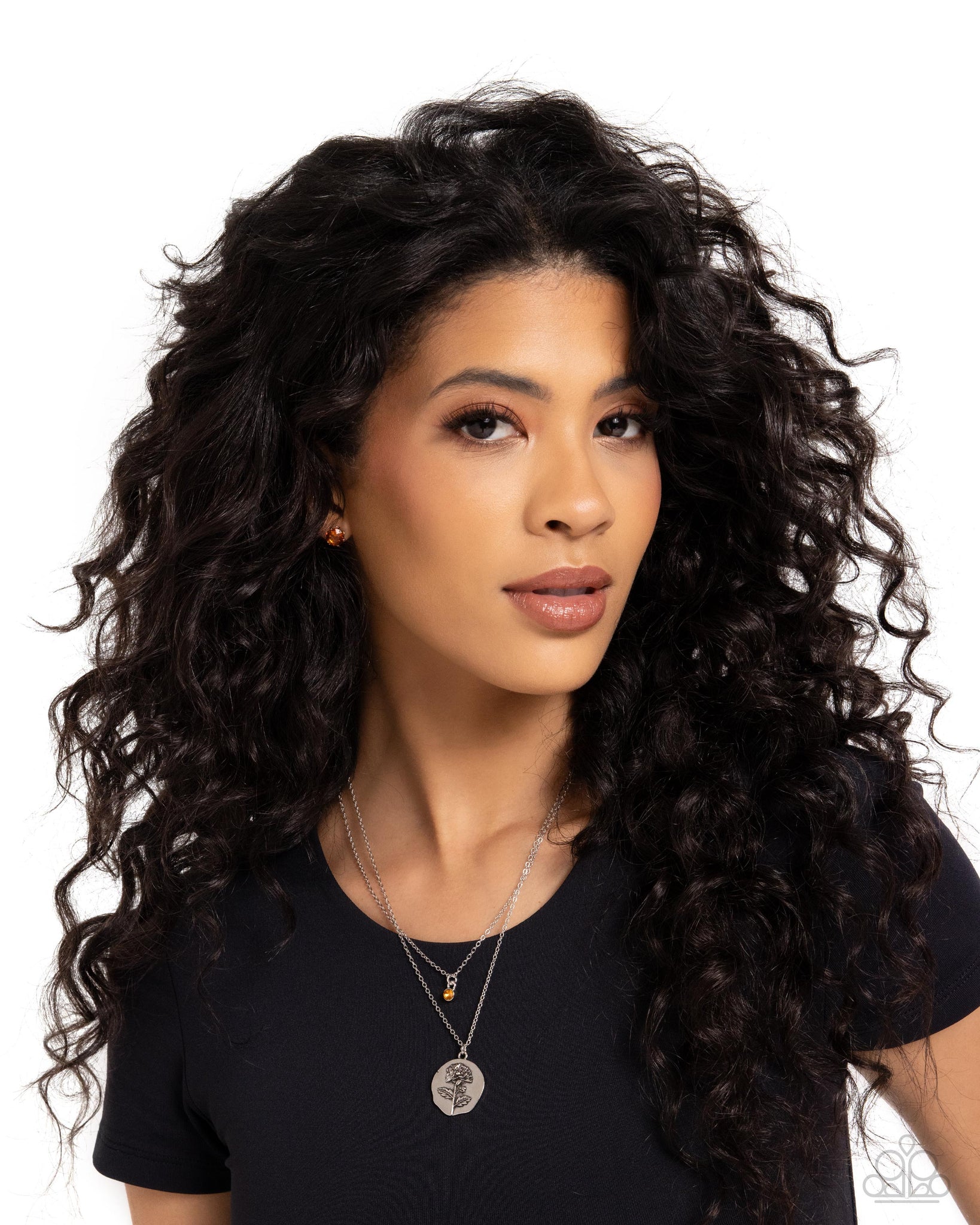 Two shimmery silver chains layer down the chest. Featuring a topaz rhinestone in a silver frame, the uppermost strand gives way to a classic silver pendant featuring an embossed chrysanthemum flower, flawlessly displaying the sentimental symbols that celebrate those born in November. Features an adjustable clasp closure.