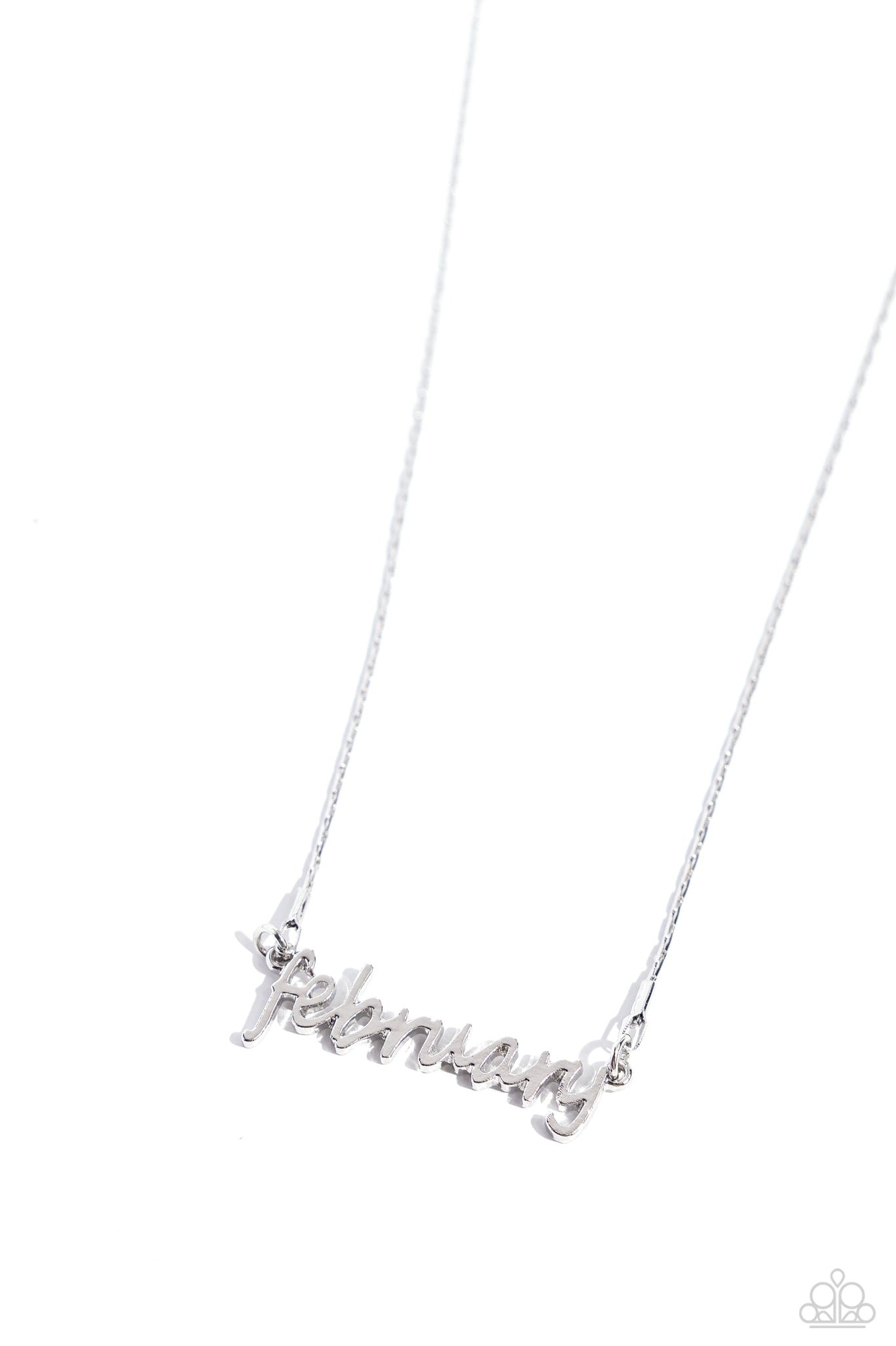 Featuring a cursive font, the word "february" is set in the center of an abstract silver chain for a birth month-inspired simple statement. Features an adjustable clasp closure.