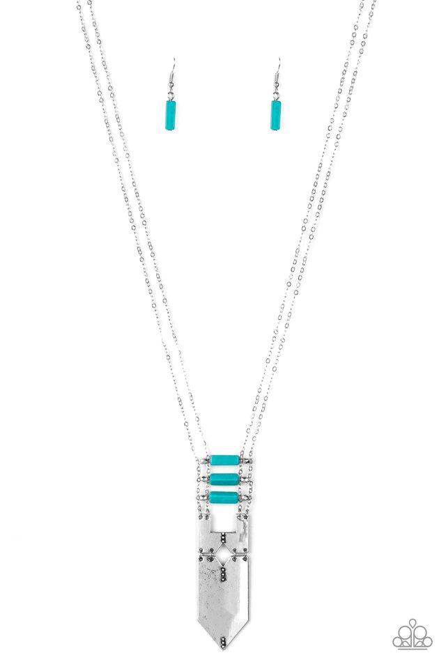 Dotted in sections of dainty silver studs, shiny silver plates connect at the bottoms of double silver chains. Infused with faceted silver accents, a row of rectangular turquoise stones give way to the tribal inspired plates for an authentic artisan finish. Features an adjustable clasp closure.