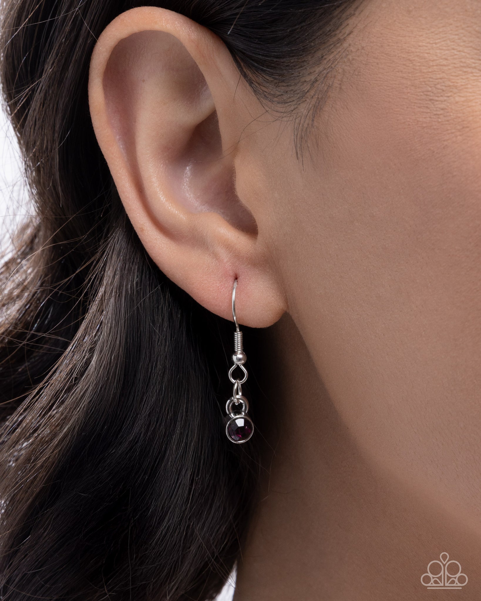 Dusted in amethyst, light amethyst, and amethyst iridescent rhinestones, curly ribbons of silver flair along an amethyst rhinestone-embellished silver stem, creating a peacock feather-inspired centerpiece below the neckline from an elongated silver oval chain for a whimsically wild look. Features an adjustable clasp closure. Due to its prismatic palette, color may vary.