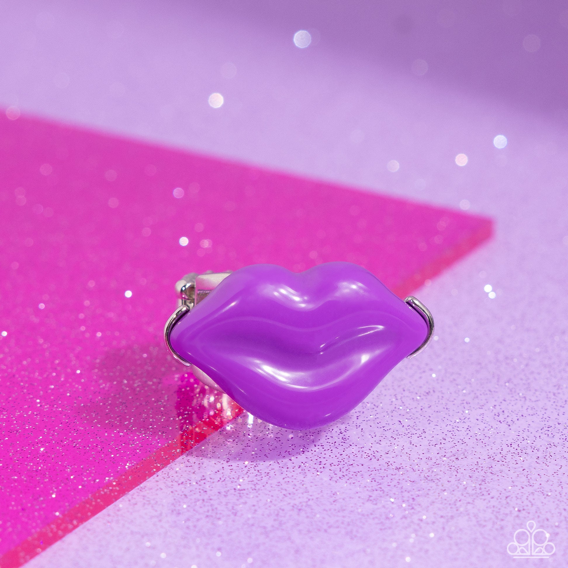 Featured atop airy silver bands, a pair of purple acrylic lips stands out atop the finger for a vibrant, carefree finish. Features a stretchy band for a flexible fit.