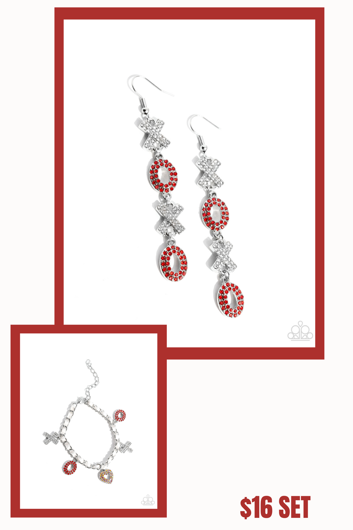 EARRING: Featuring a three-dimensional motif, the letter "X" dusted in white rhinestones gives way to the letter "O" dusted in red rhinestones for a radiantly romantic lure. Earring attaches to a standard fishhook fitting.