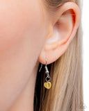 A delicate strand of white seed beads is interspersed with silver accents, dainty pearls, faceted UV discs, tranquil pebble-like stones, translucent heart-shaped stones, a yellow butterfly charm, and a yellow translucent star charm. Features an adjustable clasp closure.