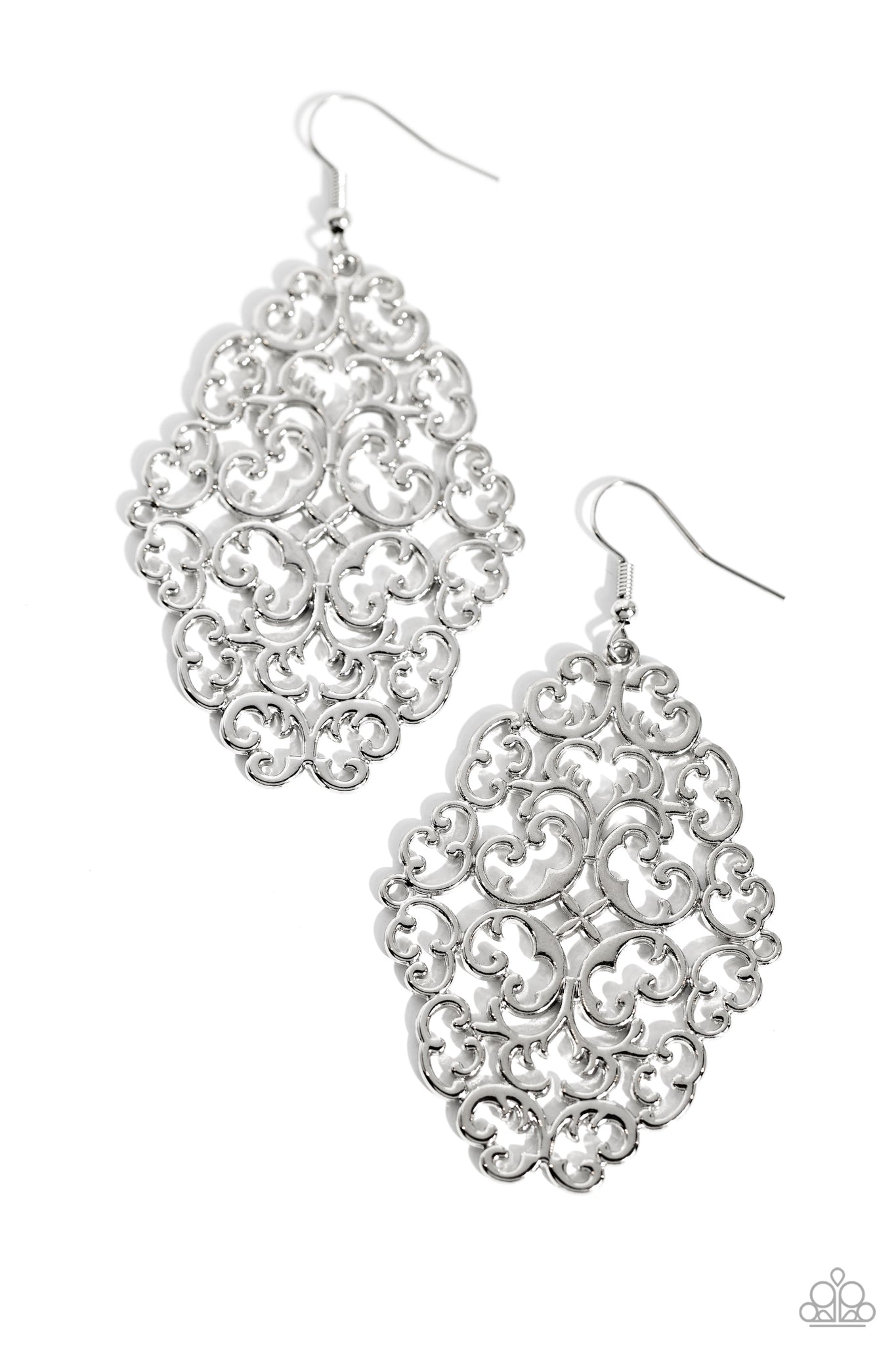 Brushed in a shiny finish, a regal vine-like motif climbs into an airy backdrop for a seasonal inspired shimmer. Earring attaches to a standard fishhook fitting.