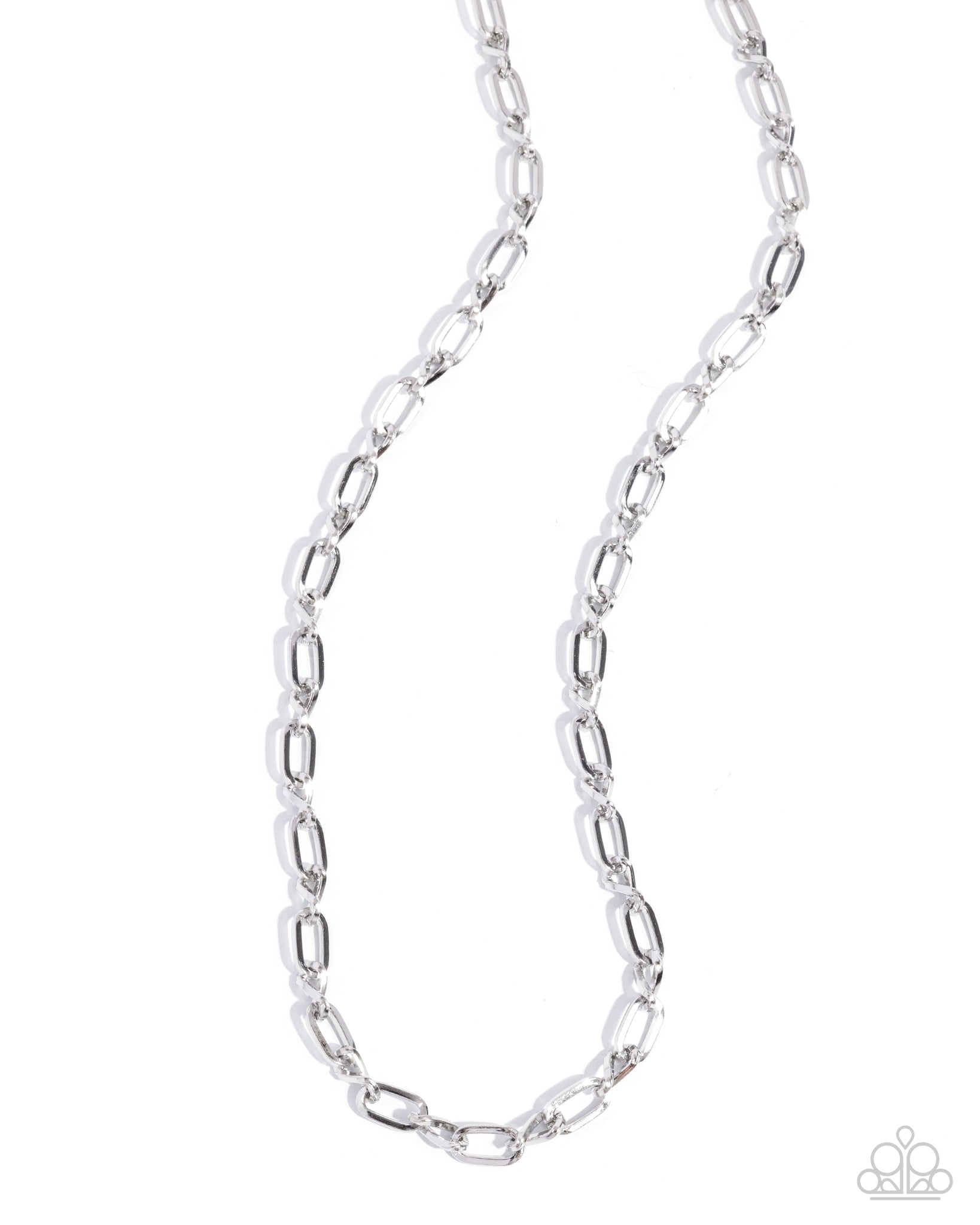 Alternating along the neckline, a collection of high-sheen oval silver links connect to infinity-like silver twists for a suave self-asserting statement. Features an adjustable clasp closure.