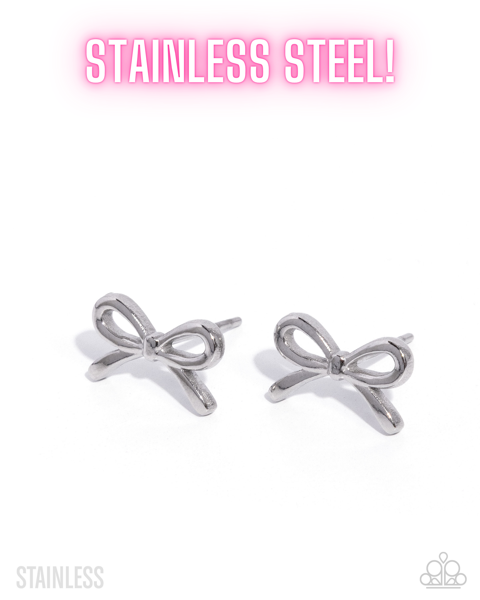 Featuring stainless steel, dainty silver bows glisten from the ear for a classic coquette-inspired display. Earring attaches to a standard post fitting.