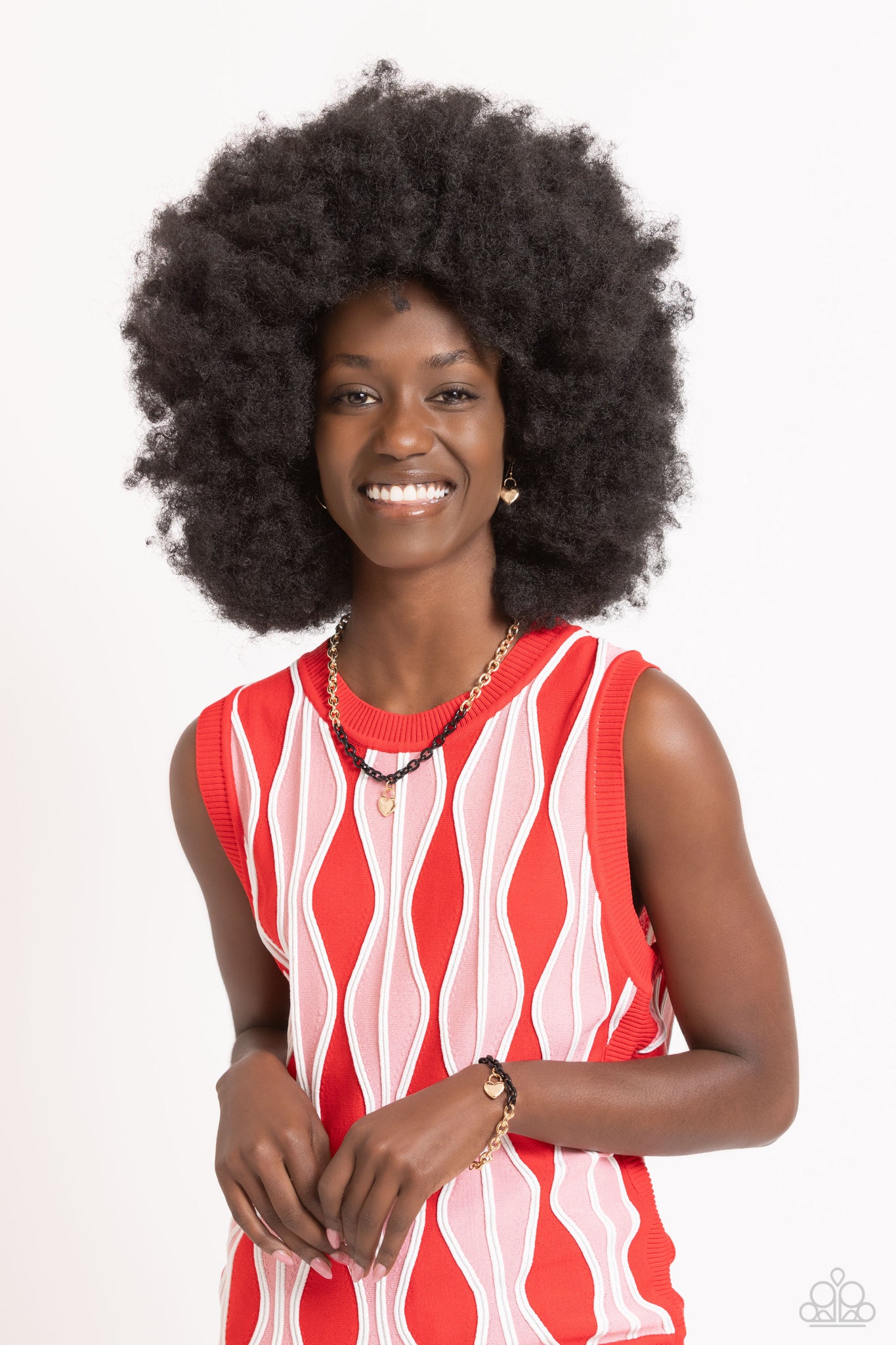 Infused with splashes of black chain, a high-sheen gold chain dances around the wrist for a spunky industrial statement. A dainty hammered gold lock pendant graces the bottom of the bracelet, further infusing the design with a touch of romanticism. Features a toggle clasp closure.