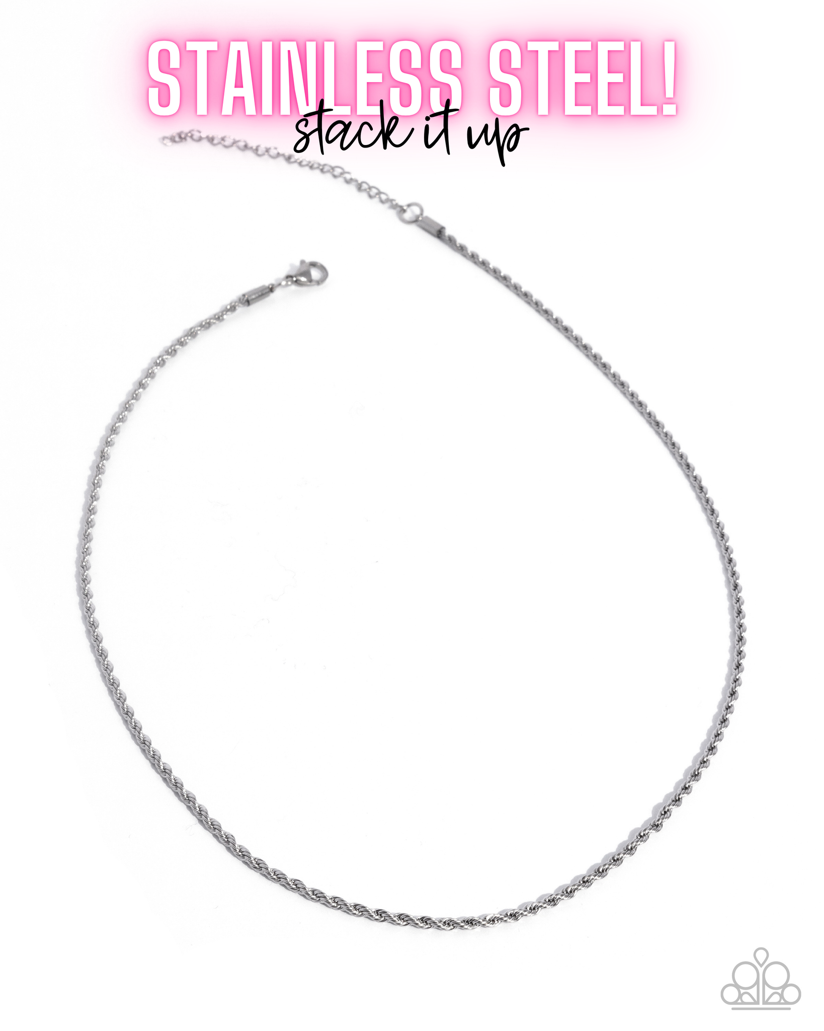 Featuring stainless steel, a classic rope chain elongates across the neckline for a confidently casual look. Features an adjustable clasp closure.