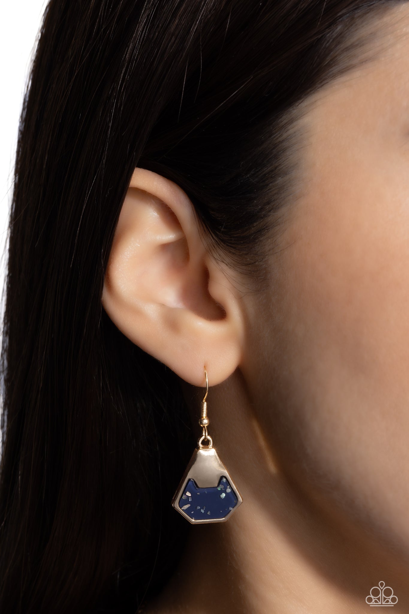Flecked in iridescent shell-like accents, geometric Rhodonite acrylic frames are pinched in place by folds of gold atop the front of flat gold frames. The glimmering frames alternate with dainty gold triangular frames below the collar, resulting in a stellar fringe. Features an adjustable clasp closure.