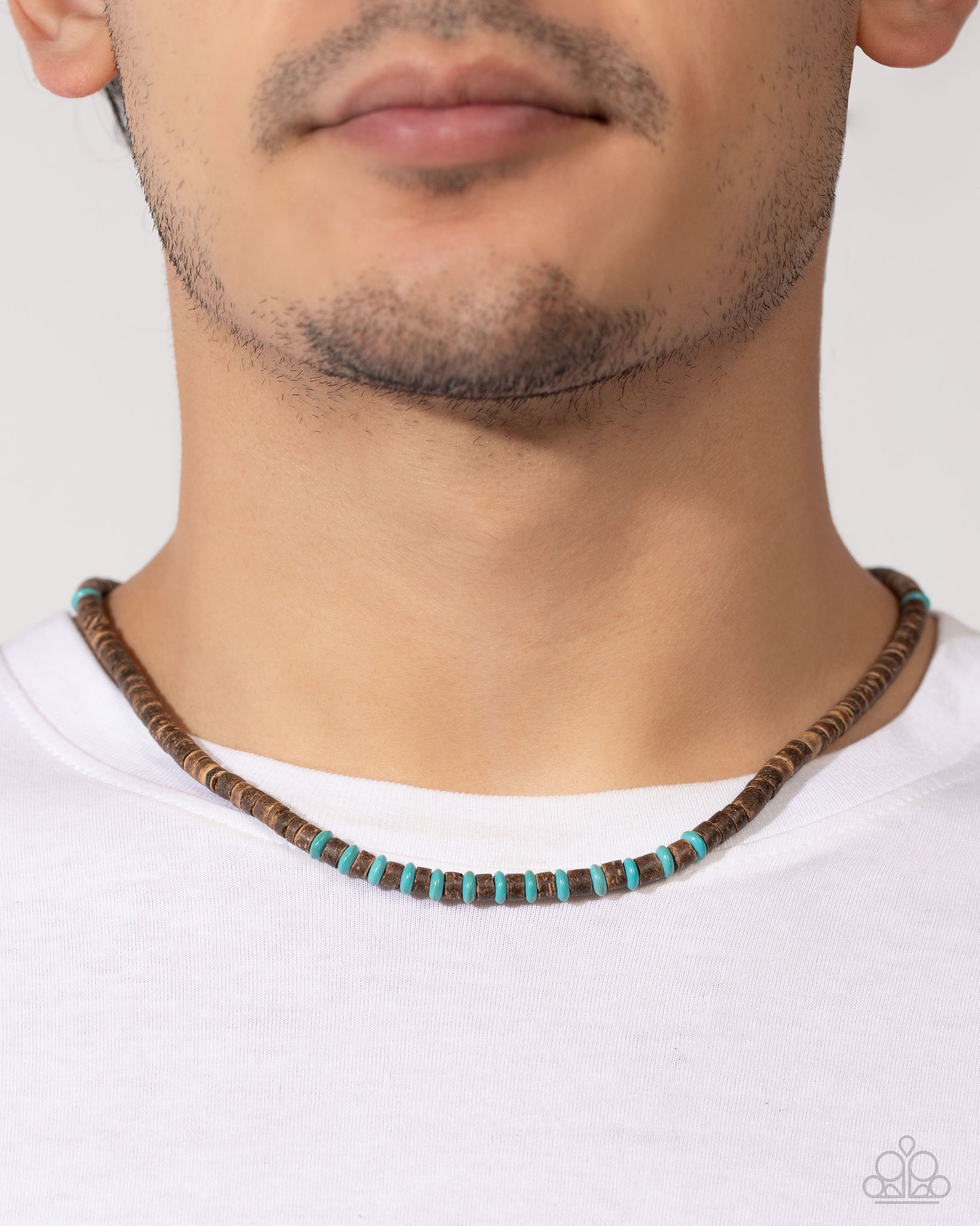 Threaded along an invisible wire, brown wooden beads and turquoise stone discs haphazardly coalesce down the neckline for an earthy finish. Features an adjustable clasp closure. As the stone elements in this piece are natural, some color variation is normal.